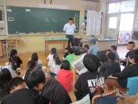 体育の学習でベースボール型ゲームを行っています。みんなで声を掛け合い、寒さを吹き飛ばすぐらい、熱い試合を行っています。