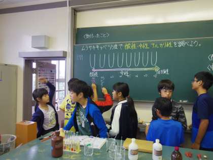 6年生は、社会科で明治の国づくりを始めた人々を学習しました。理科では、水溶液の性質についてムラサキキャベツを使って実験を通して考えました。