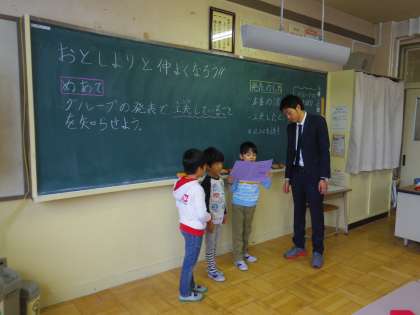 3年生は、総合の学習でお年寄りの方々となかよくなるために、自分たちにできることを考えました。和楽苑の方々と交流会を予定しています。