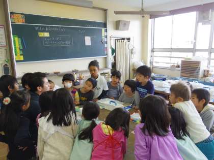 1年生が図工室で絵の具の使い方を学習しました。いつもは、教室で行うのですが、広い図工室で学習するとわくわくします。
