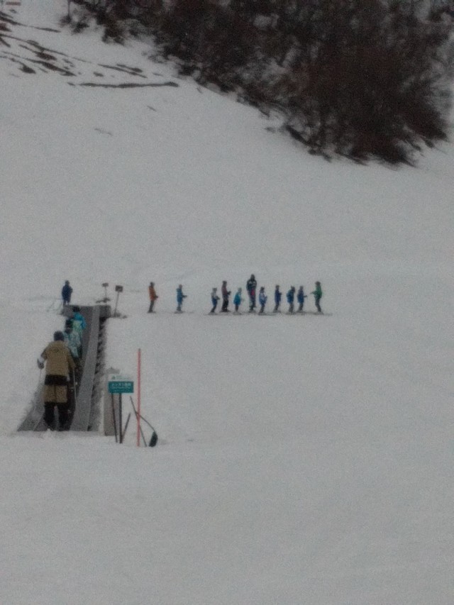斜面を使って滑る練習です。経験者は難なく滑っています