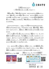 文部科学大臣からのメッセージ 公開日 2024/08/30 更新日 2024/08/30 学校日記 文部科学大臣からのメッセージです。https://www.mext.go.jp/a_menu/shotou/seitoshidou/mext_00003.html