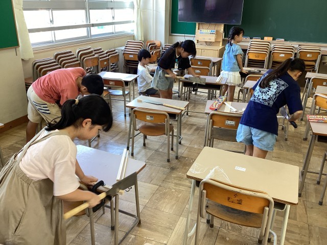 【3年】のこぎりザクザクつないでつけて 公開日 2025/10/09 更新日 2025/10/09 学校日記 図工では、初めてのこぎりを使って作品づくりをしています。多くの人にとっては刃物を使う初めての体験ではないでしょうか。緊張しながらも丁寧に万力で木を固定させて切っていました。 今、作っている作品は学習発表会の時に展示します。ご期待ください!