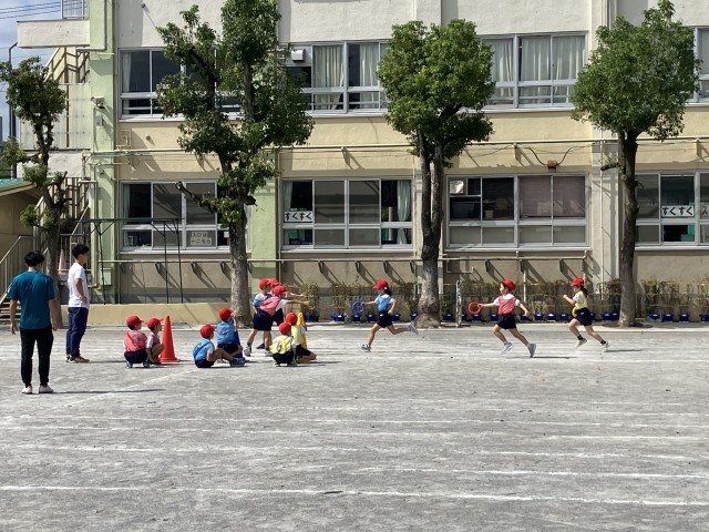 今年度の運動会では学年ごとに選抜メンバーによる学級対抗リレーを行います。1年生も練習を通して入場から退場までしっかりと覚えることができました。