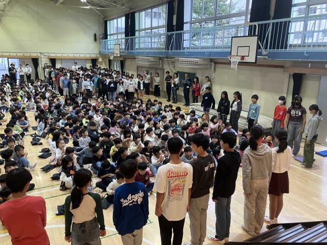 全校朝会で体育大会の入賞者が表彰されました。頑張った6年生全員に大きな拍手が贈られました。
