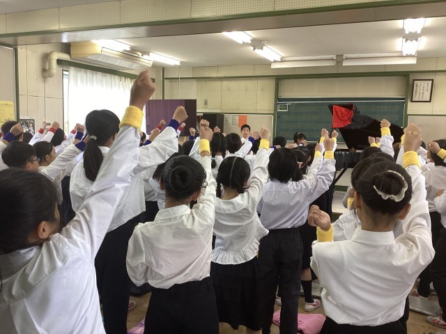 本番前の練習や待機している時には緊張した面持ちでしたが、体育館に入ると笑顔が見られ、楽しみながらでも頑張ろうという気持ちが伝わりました。