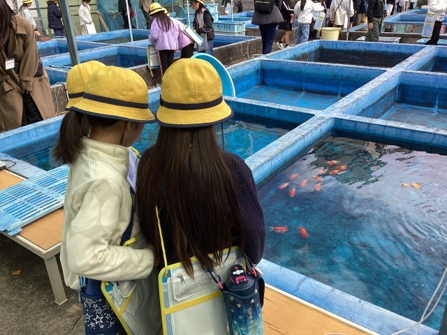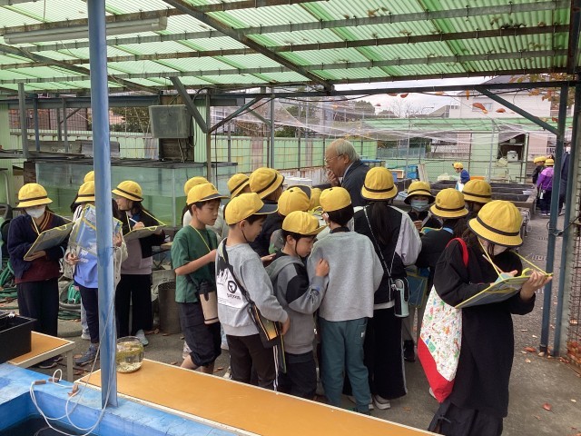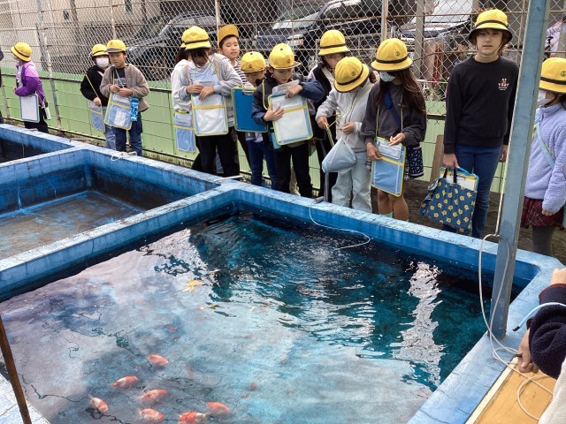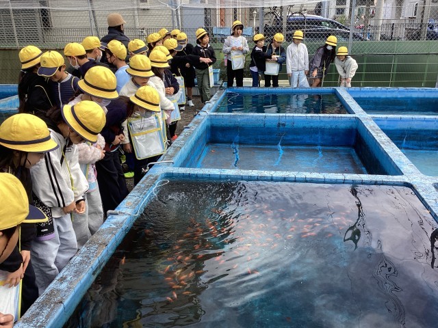 総合的学習の時間『金魚の秘密を紹介しよう!』の一環として堀口養魚場を見学してきました。事前に少し調べ学習していたこともあり、堀口さんにたくさんの質問をしたり、珍しい金魚を見させてもらったり良い時間を過ごしました。