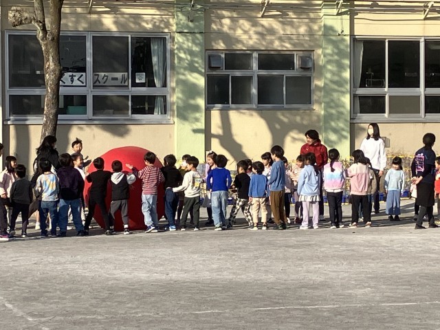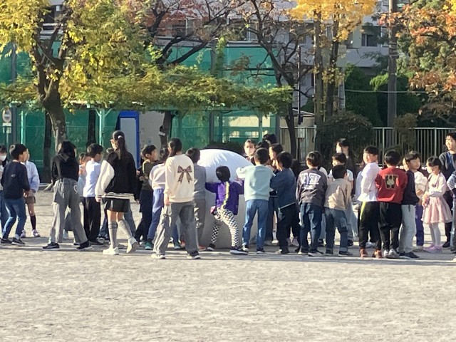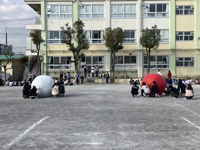 大玉転がし集会がありました。なるべく全員が大玉に触れるようにと集会委員がルールを工夫してくれたおかげで、全校で楽しく活動できました。