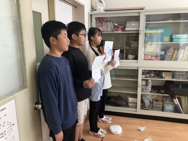 給食委員会の集会がありました。今日はビデオ放送を使って給食の歴史や栄養、調理方法、食材、食器の扱い方などをクイズ形式で紹介してくれました。