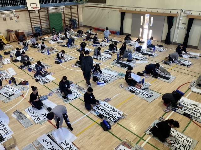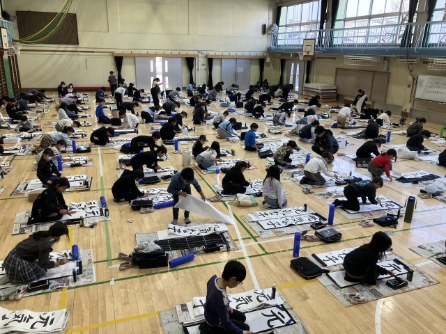 今日は書き初め大会最終日でした。まずは4年生が冬休みの練習の成果を発揮しようと頑張りました。