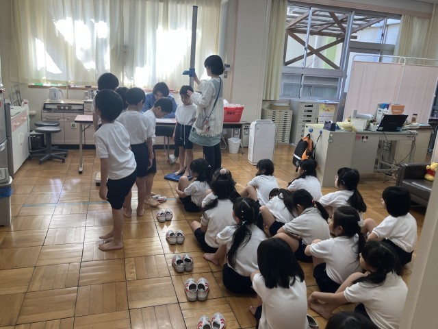 1年生の発育測定がありました。各学年とも測定が終わり次第結果をお渡ししますので、ご家庭で発育について話題にしてみてください。