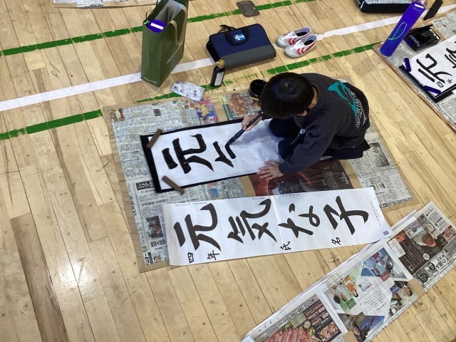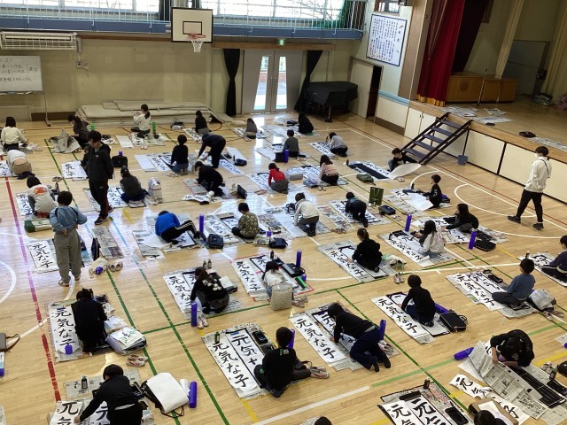 13日に書き初め大会がありました。準備を終え、いざ筆を持って書き始めると、体育館はしんと静まり返りました。子どもたちがとても集中していることが伝わってきました。冬休みの練習の成果を発揮できた子どもたちも多かっただろうと思います。書き初めで書いた「元気な子」の言葉のように、4年生全員が3学期も元気に過ごせるといいです。