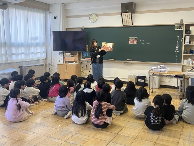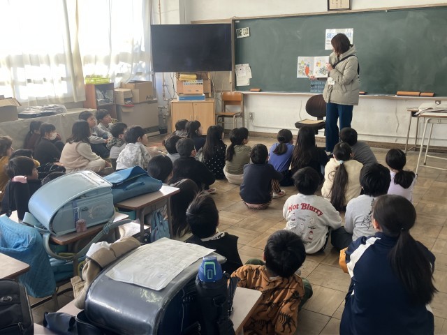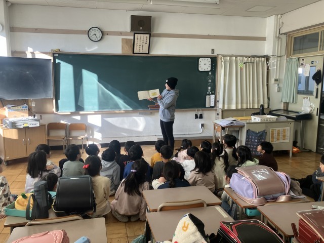 下学年の読み聞かせがありました。チャレンジ・ザ・ドリームで来ている中学生も聞き入っていました。いち・にの・くれよん♪のみなさん今日もありがとうございました。