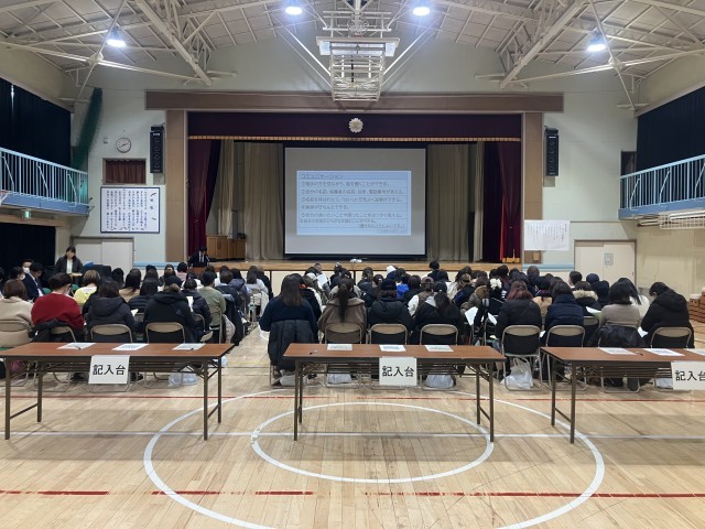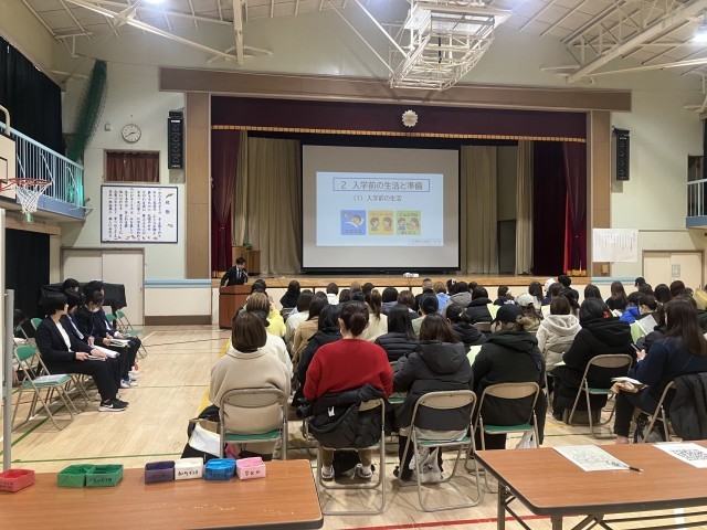 来年度入学する児童の保護者向け入学説明会を開きました。晴れても寒い中のご来校ありがとうございました。これから入学に向けて準備を進めていくことになると思います。わからないことは学校にお尋ねいただきお子さんが不安なく入学を迎えられるように準備をお願いします。
