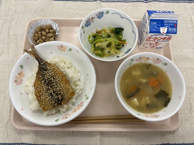 2/3(火) 今日の給食 公開日 2026/02/03 更新日 2026/02/03 学校日記 いわしの蒲焼き丼小松菜のからしあえかしわ汁黒糖福豆今日は節分献立です。邪気払いとして飾られるいわしを使って、蒲焼き丼を作りました。福豆は黒糖を絡めて甘く仕上げました。