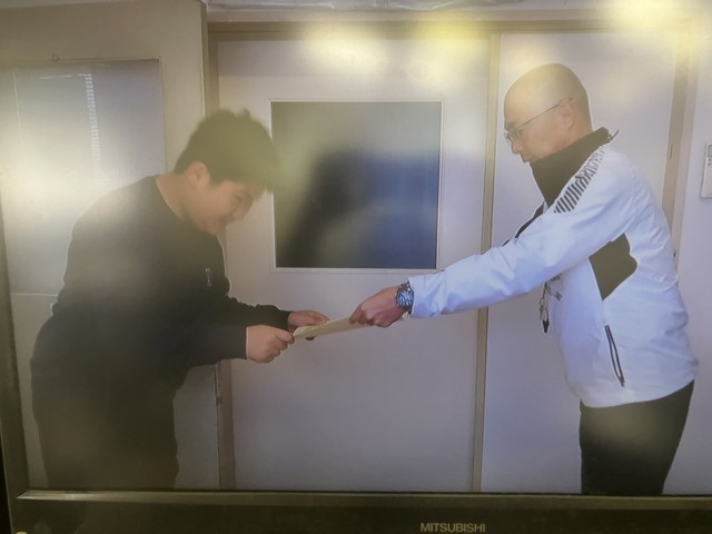 江戸川区健康努力児童に選ばれた6年生の表彰を行いました。これからも心の健康と目の健康を意識して生活していきましょう。(ビデオカメラを使って教室のテレビで視聴する朝会だったため、教室の照明が映り込んでしまい写真が見にくくて申し訳ありません)