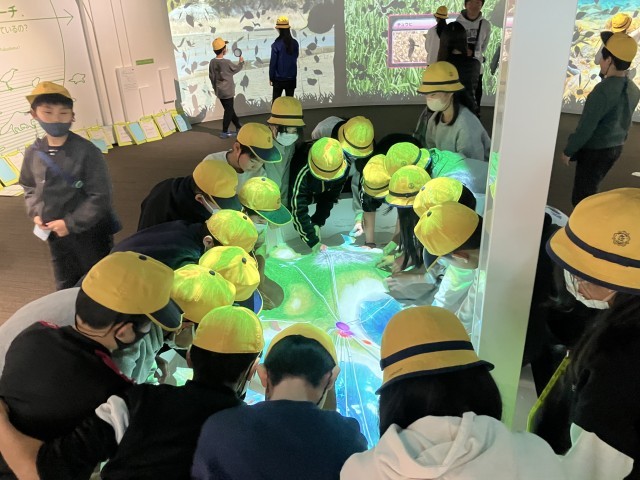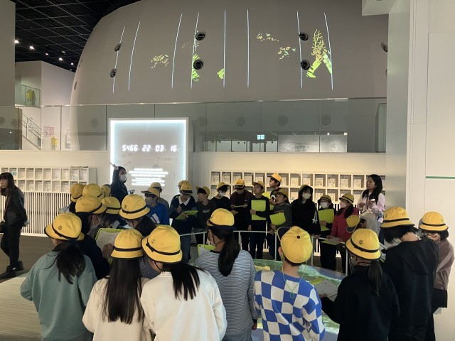 クラスごとにガイドしてもらいながら館内を見学します。