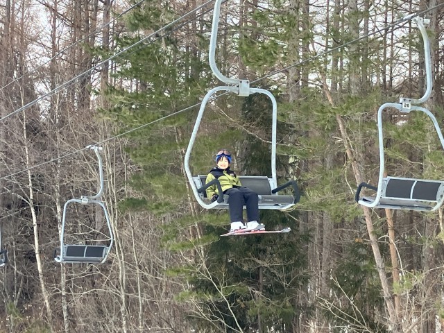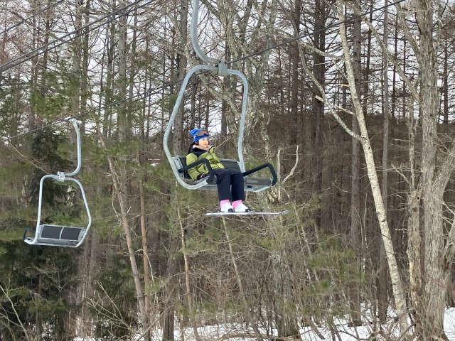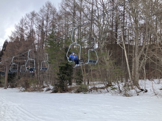 午後の部です。リフトに乗ってゲレンデの上の方まで行きました。