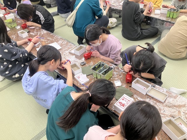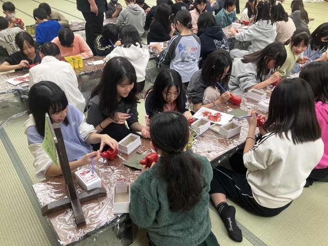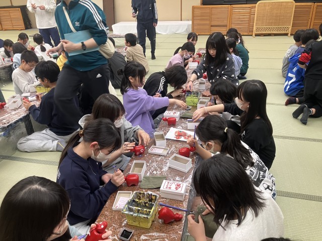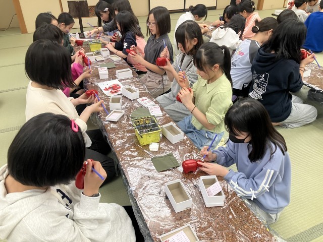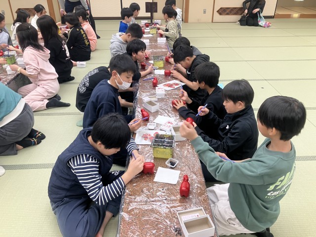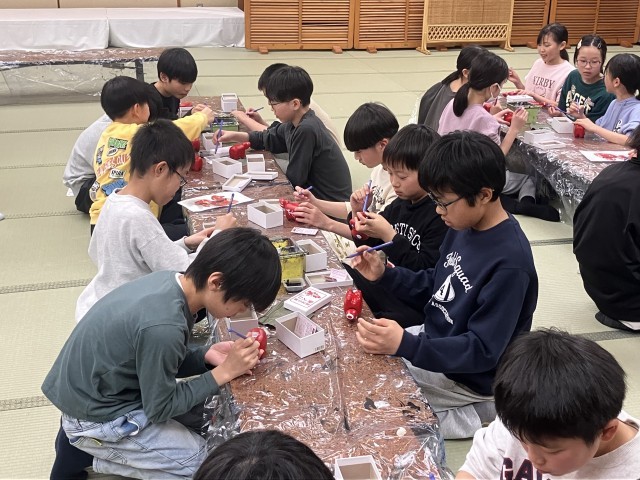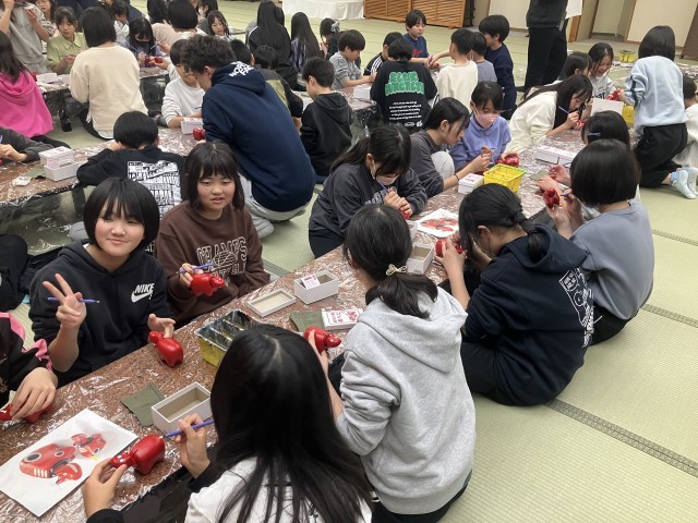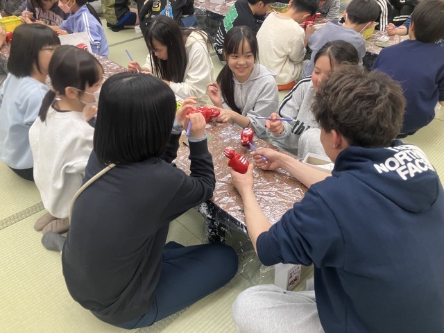 夕食後は赤べこの絵付けを体験しました。完成した赤べこはウインタースクールのお土産です。
