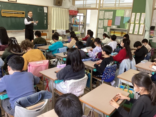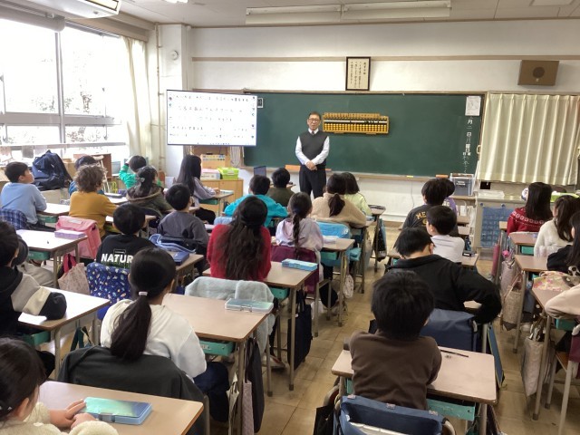 【3年】そろばん授業 公開日 2026/03/02 更新日 2026/03/02 学校日記 今日は、そろばん教室の工藤先生を講師に招いてそろばんの授業を行いました。 初めてそろばんを触る児童が多い中、集中して一生懸命学習しました。難しい暗算を実際に先生に解いてもらうところから始まった授業は終始、児童の興味をひく内容でした。明日ももう1時間あります。そろばんの素晴らしさに触れる時間になれたば良いなと思います。 +1