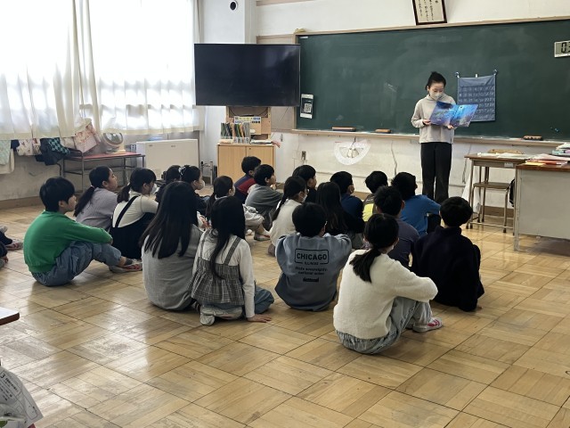 図書委員による読み聞かせがありました。図書委員さんは今日のために担当学年に合わせた本を選び、何度も練習して臨んでくれました。とても緊張したと思いますが、ありがとうございました。