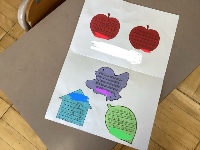 みんなでお別れセレモニーをして、寄せ書きのプレゼントを渡しました。