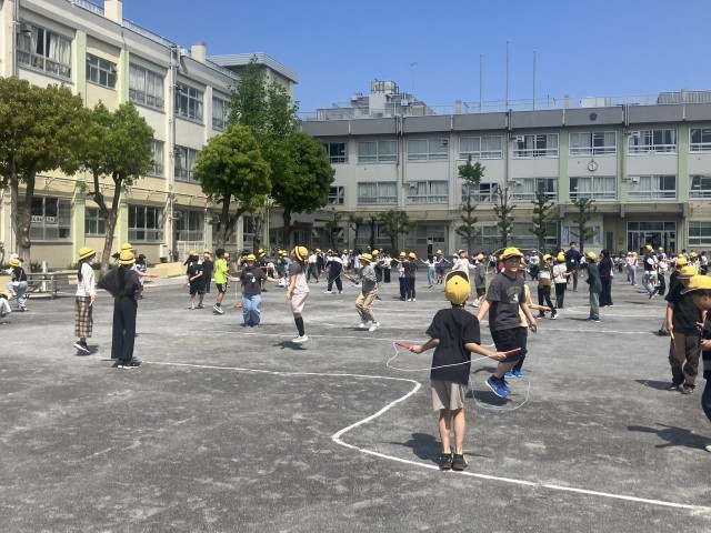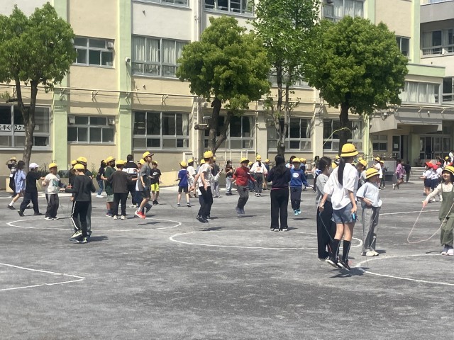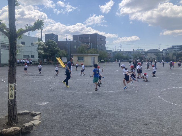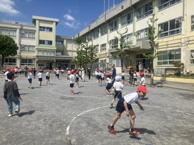 昨日の雨で校庭は少しぬかるんでいる所がありましたが、今日も中休みには縄跳びに取り組みました。