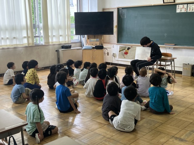今日の朝の活動は担任による読み聞かせでした。いつもと違う雰囲気の中、みんなリラックスして聞き入っていました。