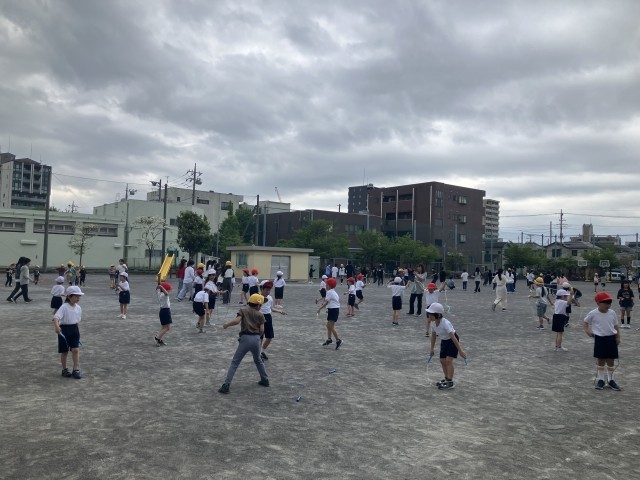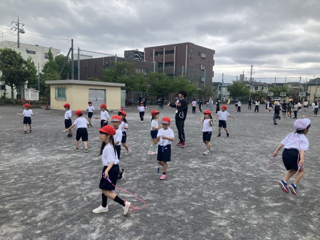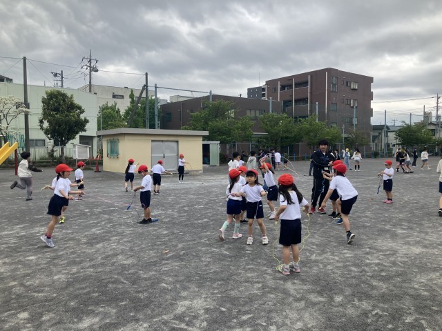 1年生にとっては初めての縄跳びウィークでした。最後の方で雨が降り始めてしまい少し時間が短くなってしまいましたが、小学校で初めての縄跳びに楽しく取り組みました。