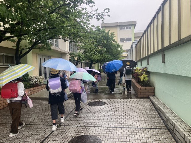 一週間の始まりがあいにくの雨となってしまいましたが、みんな元気よく挨拶をしながら登校してきました。登校時間の頃には雨風とも強くなって傘が壊れてしまった子もいたようです。お子さんが帰りましたら傘が壊れていないかご確認ください。