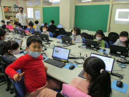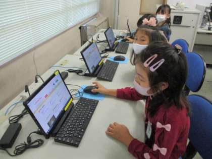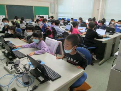 パソコンルームに来たのは3回目という1年生です。