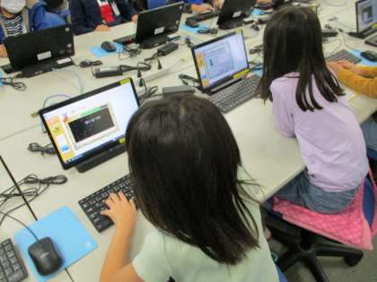 子供たちは文字入力のキーボードレッスンに励んでいました。自分の能力に応じたレベルを選択して、熱心に取り組んでいます。