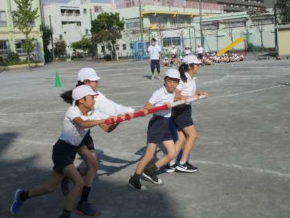 4クラス対抗戦です。校庭を駆け抜けた4つの台風は、あっと言う間に遠く東の洋上へ。