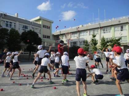 本命の玉入れとともに、輪になって踊るカニとエビに目を奪われました。玉の数にノリの良さをボーナスポイントにしてあげたい気分にさせる子が多数。
