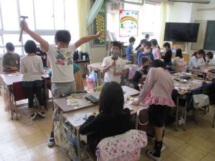 今は図工の時間、釘打ちをする音が響き渡っている、4年生の教室でした。