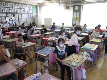 4校時終了時の5年生廊下へお邪魔してみました。授業を参観する際には、子供たちと雑談するのは難しいので、絶好のチャンスなのです。私が名指しで声を掛けようものなら、ビックリする子がまだ多いです。「何か悪いことしちゃったでしょうか?」みたいな、緊張した表情をする子がいますから。大丈夫! リラックスしてコミュニケーションしましょうね。