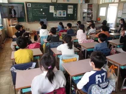 また、先週の運動月間を振り返り、発表を行った3年生と6年生を称えるお言葉が述べられました。画像はそのメッセージを聞いていた3年生の様子です。一人一人の胸に、改めてやり遂げた喜びが蘇ってきたに違いありません。