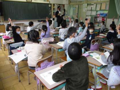 かえるくんやがまくんが繰り広げる、有名な国語科教材「お手紙」のお話を勉強した1年生が、今度は登場人物へ宛てて、実際にお手紙を書くようです。好きな場面(人気が集中している場面あり)を選び、その内容に合った文章を綴っていく時間となっています。