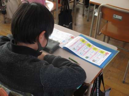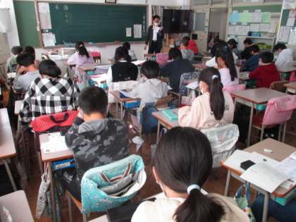 小学校卒業へ向けて、新出漢字の学習も全て修了しなければなりません。6年生がゴールへ向かって、残りの漢字を練習していました。筆順を確認する空書きだって、まだまだ健在です。(中画像)
