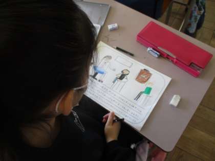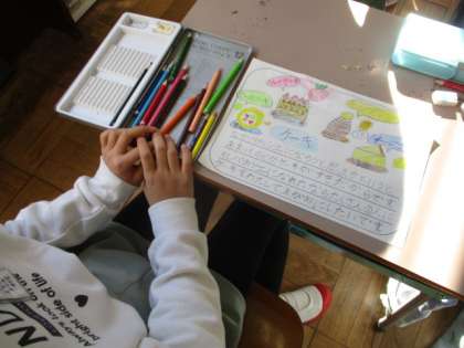 こども宇宙プロジェクトに際し、一人一人が思い描いた夢を、今日は絵と文章で表現していました。作品を仕上げている2年生の教室は、とっても朗らかな雰囲気に包まれており、明るい希望をふくらませている心情の表出に感じました。
