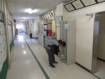 おたよりボックスに取りに来てくれた人たち、ありがとう。みんなのおかげで、もれなく全校に配られるのです。