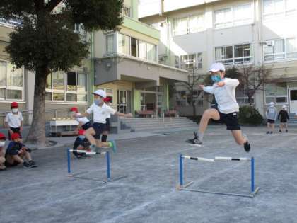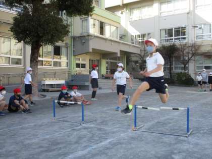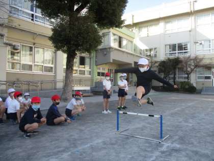 上達していくためには、ハードルを越えるときの脚さばきが、大きなポイントを握っています。そこで、ハードルの横で振り上げ脚と抜き脚をじっくり練習する時間を取りました。これにより、子供たちの上下動が小さくなっていきました。あとは、奇数の歩数が安定してくると、よりレベルアップが図れそうです。
