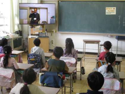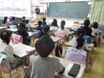 校長先生が手にしていらっしゃるのは、「パンの缶づめ」です。子供たちは興味津々、見聞きしていました。