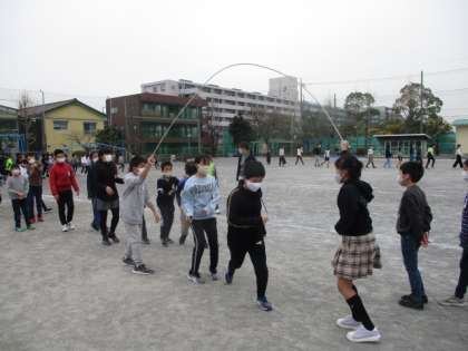 心配された雨はまだ降り出しておらず、3・4・5年生が予定通り長なわとびを行うことができました。