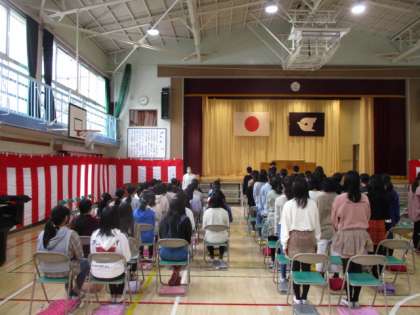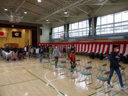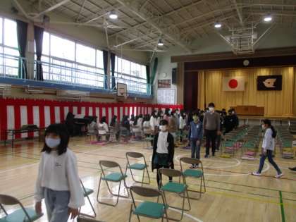 卒業式練習が進んでいます。体育館にお邪魔した際、ちょうど退場のシーンでした。真剣に臨む6年生が視界に入ってきました。
