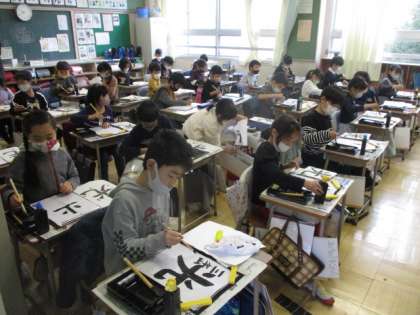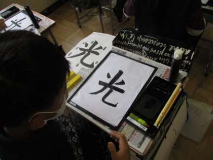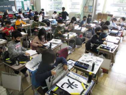 「一」の横画を書くことからスタートした、3年生の習字学習も今では「光」を書くまでになりました。こんな点にも成長を感じさせられます。