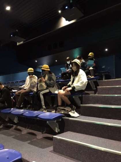 ごはんタイムです。マリンシアターの中でいただいています。