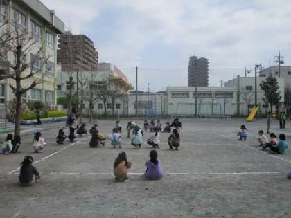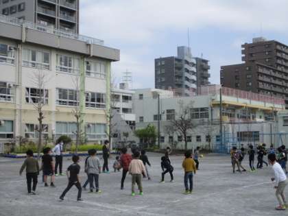 3校時の校庭では、3年生と6年生がそれぞれ、ドッジボールでおおいに盛り上がっていました。小学生って、ドッジボールが好きですね。