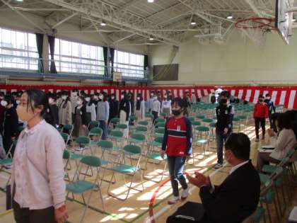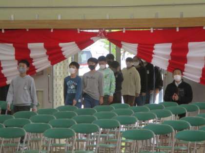 入場です。本番には、保護者の皆様も加わり、今日の2倍以上の大人たちに迎えられる卒業生なのです。