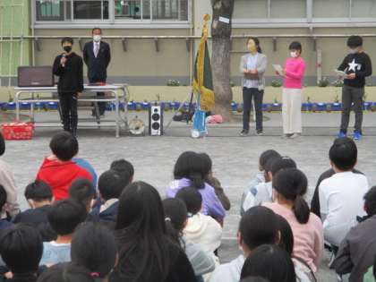 卒業式における最後の交流を実現できなかった6年生と5年生のために、それに代わる企画を立てました。短時間ながら、高学年同士の思い出作りになってほしいと、先生方が願ってのイベントです。